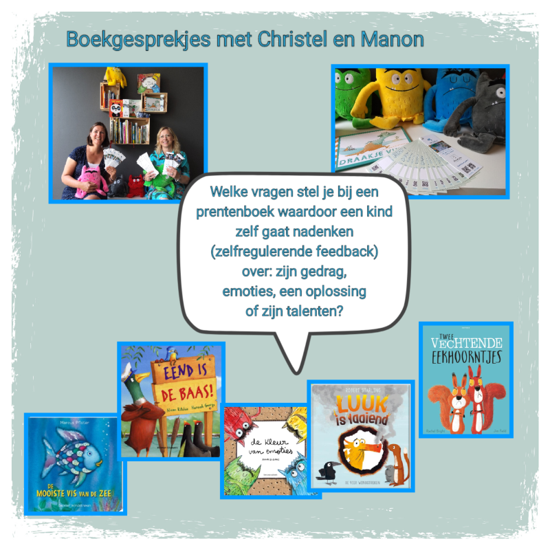 Met “Boekgesprekjes met Christel en Manon” laten wij zien hoe je prentenboeken inzet om bewustwording en ontwikkeling te creëren om welbevinden bij kinderen te vergroten. De onderliggende boodschap in een prentenboek zorgt voor kinderen voor herkenbaarheid en maakt het onderwerp beeldend. Er is voor iedereen herkenning en ieder kind haalt de boodschap eruit die passend is bij hem of haar. Het voorlezen is een prachtige start om daar vervolgens met elkaar het gesprek over aan te gaan.
